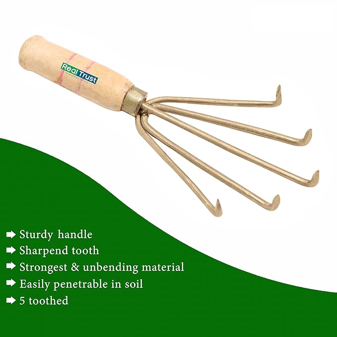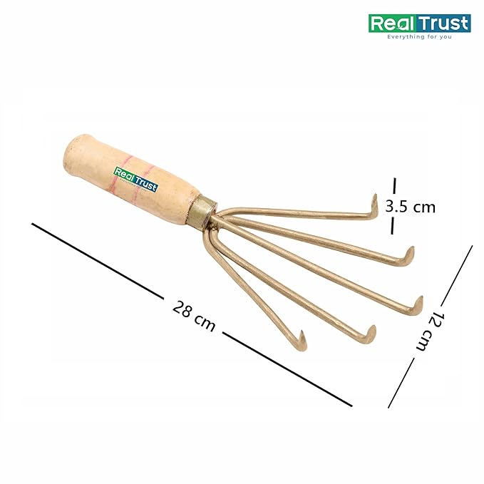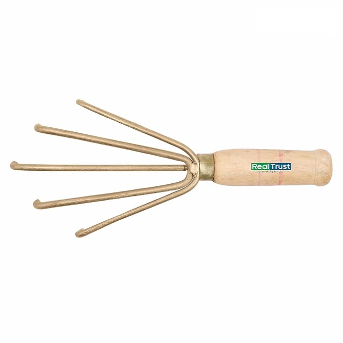The Real Trust Mini Hand Cultivator is a compact gardening tool designed to loosen soil, remove weeds, and prepare planting rows. Perfect for small gardens, it improves air, water, and nutrient penetration for healthier plants.